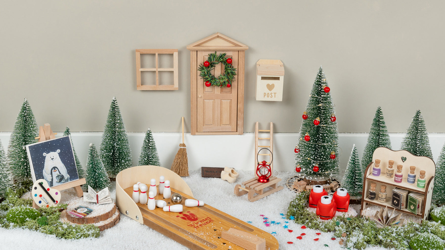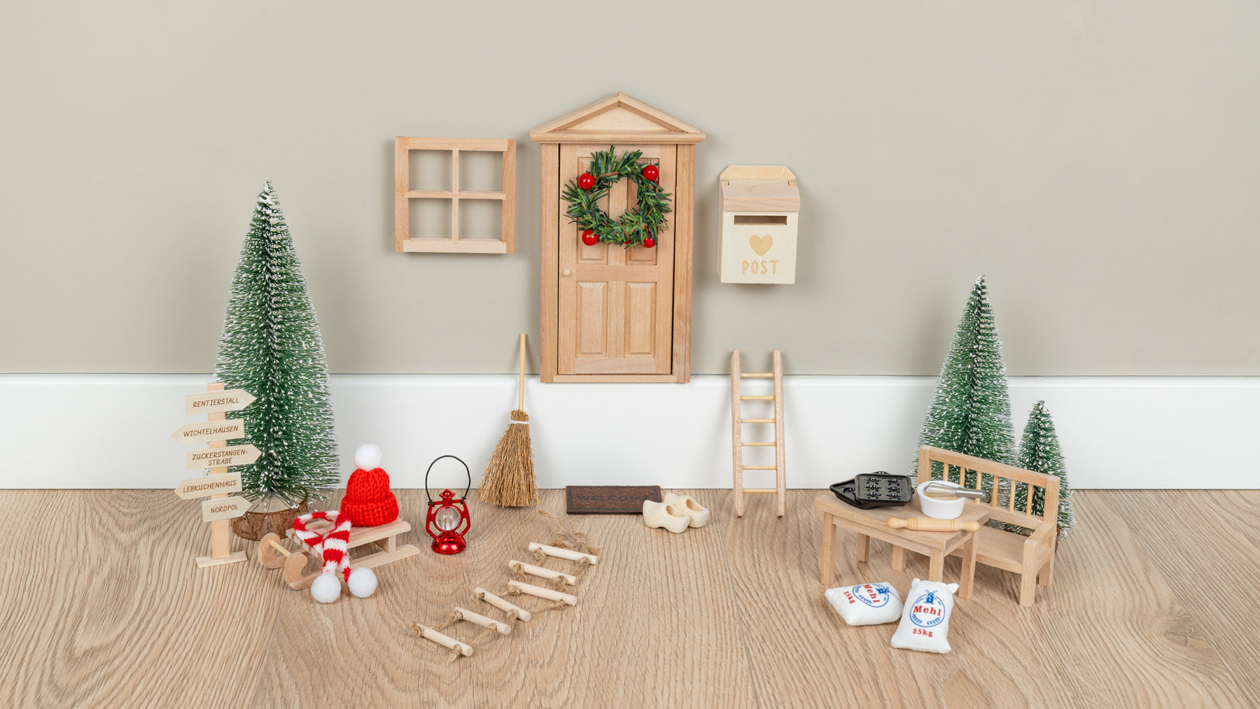 - Erweiterbares Zubehör wie Wichtelbriefe, Mini-Laterne oder Fußmatte